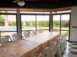 Cervantes 2058 Hermoso chalet de seis ambientes, en dos plantas. La entrada, tiene una puerta doble, de madera. Recibidor lugares ideales de descanso. Living comedor seguidos uno del otro con un desnivel, con vista y salida a el jardín. Cocina muy amplia, con una ventana balcón que da al jardín. Aportando luz natural que hace de este ambiente un lugar ideal para todo el año. Cuenta con una mesada y muebles de cocina en excelente condiciones. El fondo esta preparado con todas las instalaciones y comodidades para pasar momentos espectaculares en familia y con amigos . Cuenta con una piscina de muy buen tamaño y lugar libre de parque para jugar, el quincho esta todo vidriado con dos parrillas y una amplia mesada con bajo mesada de madera. También tiene una habitación de huéspedes, lavadero y baño con ducha. En el fondo detrás del quincho hay un alero con un horno de barro todo revestido en laja que tiene una mesada para poder preparar las cosas en el lugar. Tiene garaje para cuatro autos. salida al fondo y una escalera que da al recibidor. Cuenta con caldera, calefacción central y bomba sumergible en el garaje. Todos los ambientes tienen aire acondicionado. Es una casa que esta totalmente preparada para disfrutar de su funcionalidad y comodidades!!!! INGRID MANETTI MAT. 973 L.M.
