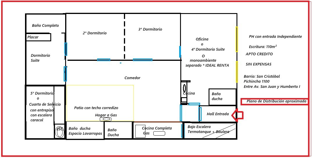 Excelente PH ubicado en el barrio de San Cristóbal sobre la calle Pichincha entre San Juan y Humberto I. Su disposición es al frente, planta baja con entrada independiente. Amplios ambientes, dormitorio principal en suite. Gran salón al frente con baño y kichenette. Patio con cerramiento corredizo que aporta luz a todos los ambientes. Toilette y lavadero Muy buen estado general, ideal familia numerosa. Cercano a numerosos colegios privados y públicos ( Distrito escolar III ) Múltiples medios de transporte de colectivos líneas 4, 8, 12, 23, 37, 46, 53, 56, 57, 61, 62, 84, 86, 88, 90, 91, 95, 96, 118, 126, 129, 151, 188, 195 Subtes (Metro): HUMBERTO 1° (Línea H), JUJUY (Línea E), PICHINCHA (Línea E) SIN EXPENSAS! OPORTUNIDAD!! Se Escuchan Ofertas VÉALO!!