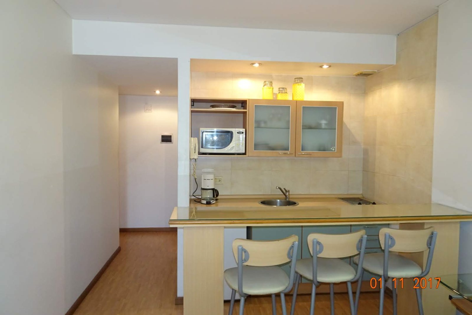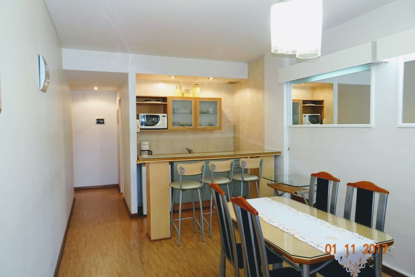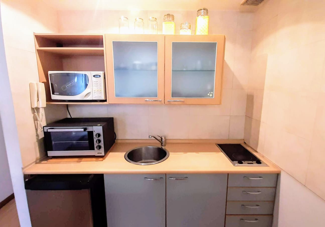 Excelente monoambiente en Alquiler Temporal en Av. Callao 900, frente a la plaza Rodríguez Peña ubicado en un piso 11 al contra -frente. Muy cómodo y luminoso. El departamento cuenta con un área de living comedor con pequeña mesa y sillas, la cocina está integrada al ambiente, completamente equipada con heladera bajo mesada, Baño completo, dormitorio con una cama de dos plazas, aire acondicionado frio, calefacción por loza radiante, hermoso ventanal con vista a la ciudad. Todos los servicios incluido menos la luz (se abona aparte), Completamente Equipado!. El edificio posee seguridad las 24hs con recepción de pasajeros, gym, piscina y solárium. En una excelente ubicación, a menos de dos cuadras de Av. Córdoba y Av. Santa Fe, cuenta con innumerables líneas de colectivos, ubicado a solo dos cuadras de la estación de Subte Callao, línea D, en cercanías a la facultad de medicina, centros comerciales, teatros, bares y restaurantes. CONDICIONES DE INGRESO: DNI o Pasaporte + 1 (UN) mes de depósito (le será devuelto por el propietario al finalizar el contrato) + 1 (UN) mes de adelanto + honorarios de la inmobiliaria. La empresa no garantiza la disponibilidad de los departamentos publicitados en las fechas por usted solicitadas. TARIFA Alquiler mensual: $ 900.000 Depósito de garantía : 1 mes. Honorarios: 1 mes. SERVICIOS Y GASTOS NO INCLUIDO * Electricidad. *Cable * Limpieza final. REQUISITOS * Fotocopia DNI o Pasaporte. * Constancia de Trabajo o Constancia de Estudio. Reservas La reserva será el equivalente a 1 mes de la estadía. El adelanto puede realizarse mediante: 1. Pago en efectivo en nuestras oficinas. 2. Pago en efectivo en el departamento a reservar. Check in / Check out Check in Al momento de la llegada del huésped, en el horario pre-acordado, el dueño del departamento , lo recibe en la propiedad rentada donde se firmará el contrato de alquiler y el chequeo del inventario, abonando el saldo de su estadía y el correspondiente depósito en garantía. El huésped recibe las llaves de la propiedad y los datos del dueño por cualquier requerimiento en relación a la propiedad. El check out es efectuado por el propietario del inmueble. El horario del check out ha de pactarse durante el check in ya que el propietario debe organizarse para estar disponible el día y hora convenidos para retirar las llaves y devolver su depósito. Les deseamos una feliz estadía!!